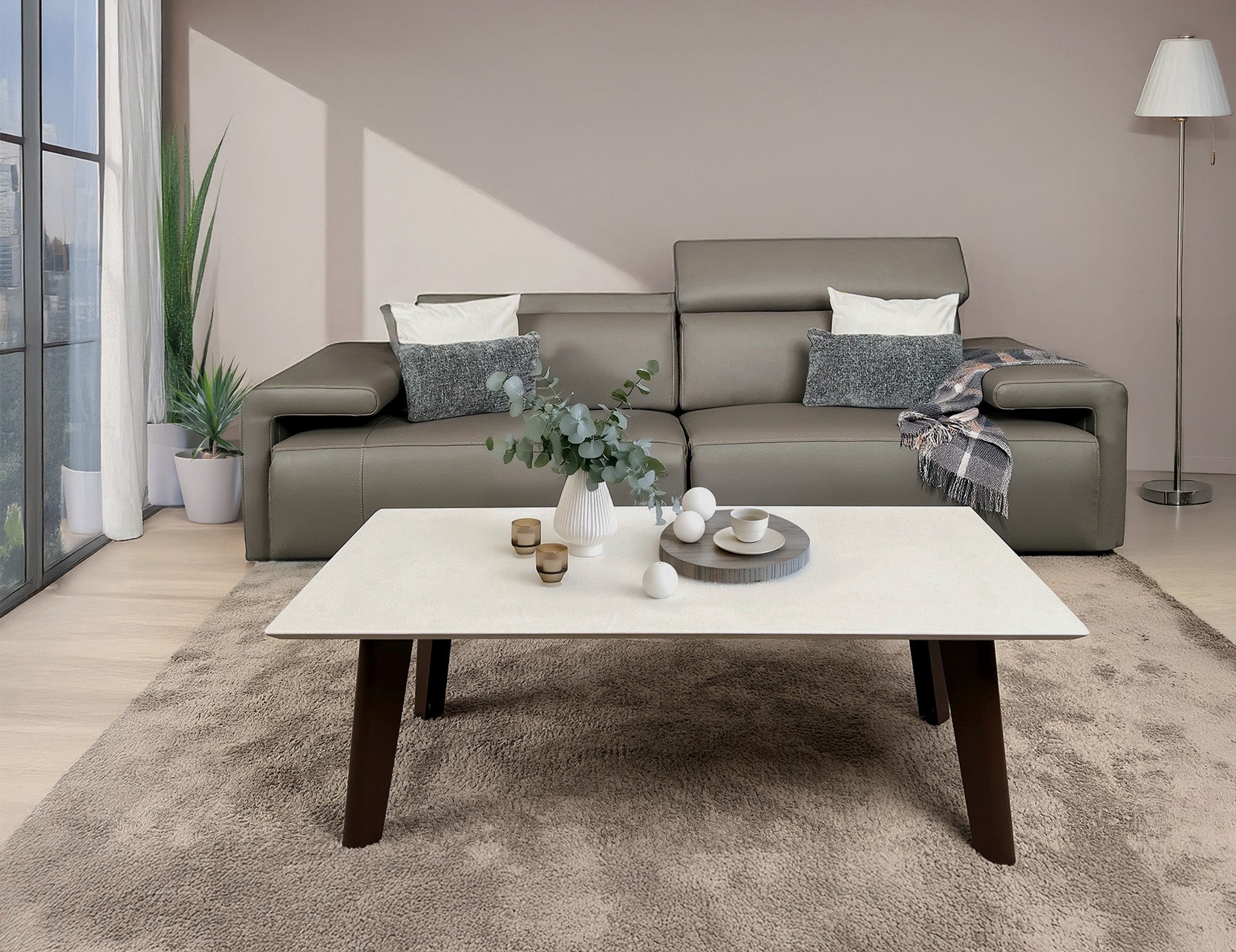 Le canapé CALUM allie design épuré et confort naturel. Avec son luxueux revêtement en cuir pleine ou demi-épaisseur, ce canapé moderne offre une sensation de douceur et d'élégance. À première vue, il semble minimaliste avec son dossier bas, mais d'une simple pression sur un bouton, le moteur à double actionneur Motion Italia le transforme en fauteuil inclinable offrant un soutien optimal.