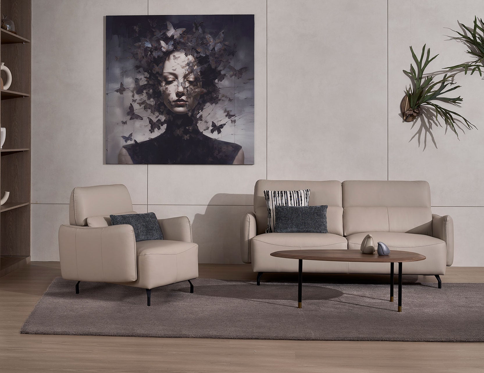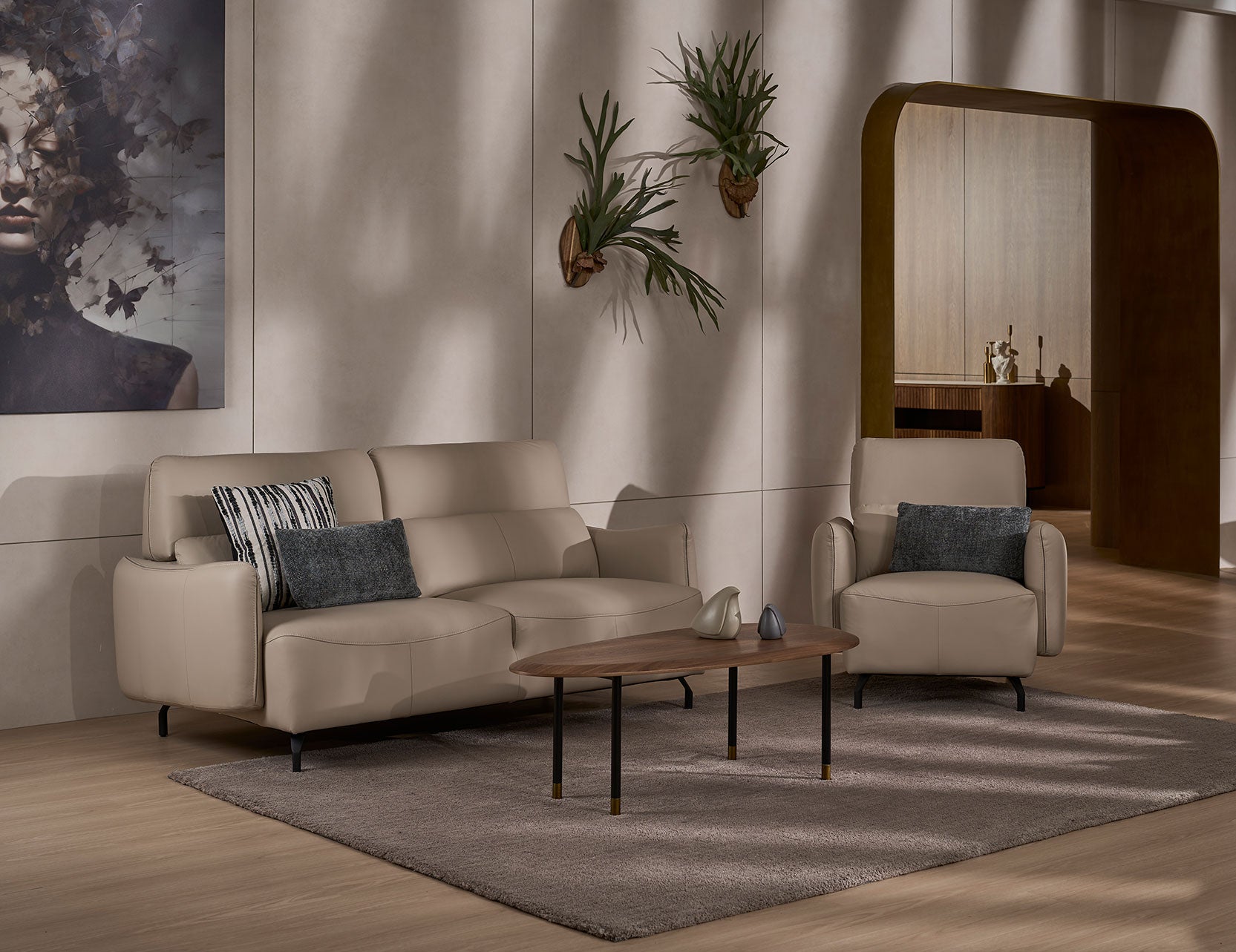 Le canapé en cuir Cruise est idéal pour les petits espaces. Ses pieds hauts et robustes en aluminium moulé lui confèrent une touche d'élégance moderne et garantissent un entretien facile grâce à l'aspirateur robot. De plus, les détails subtils du revêtement intérieur des accoudoirs et des appuis-têtes lui confèrent un caractère distinctif et un contraste de couleurs saisissant, pour un effet émerveillement garanti.