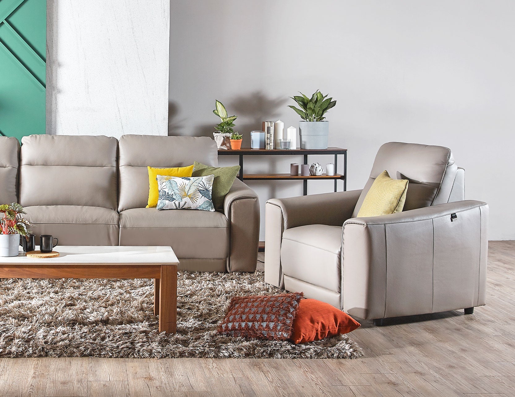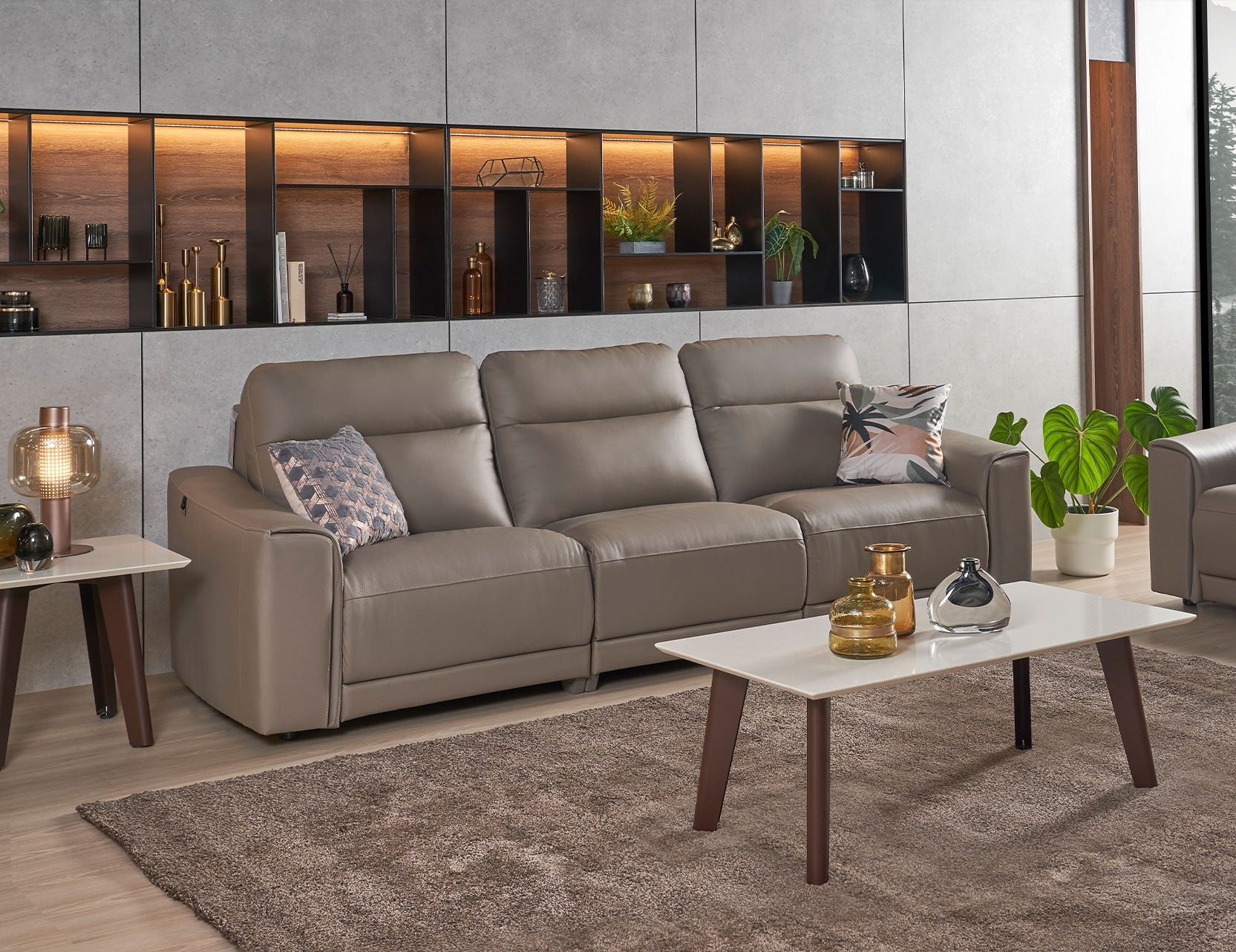 Ce luxueux ensemble de canapés est doté d'un dossier haut et offre une sensation de confort moelleux. Entièrement recouvert de cuir de vachette véritable, son mécanisme incline l'assise, le dossier et le repose-pieds vers l'avant et l'extérieur, vous permettant ainsi de placer ce canapé près du mur et d'optimiser votre espace de vie.