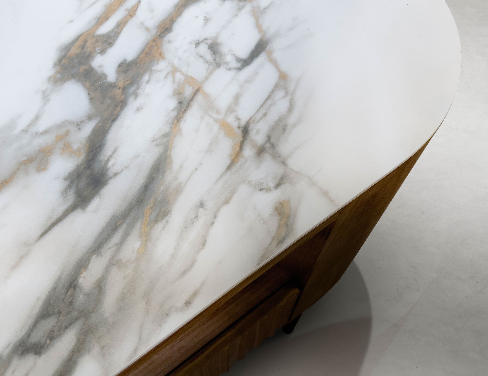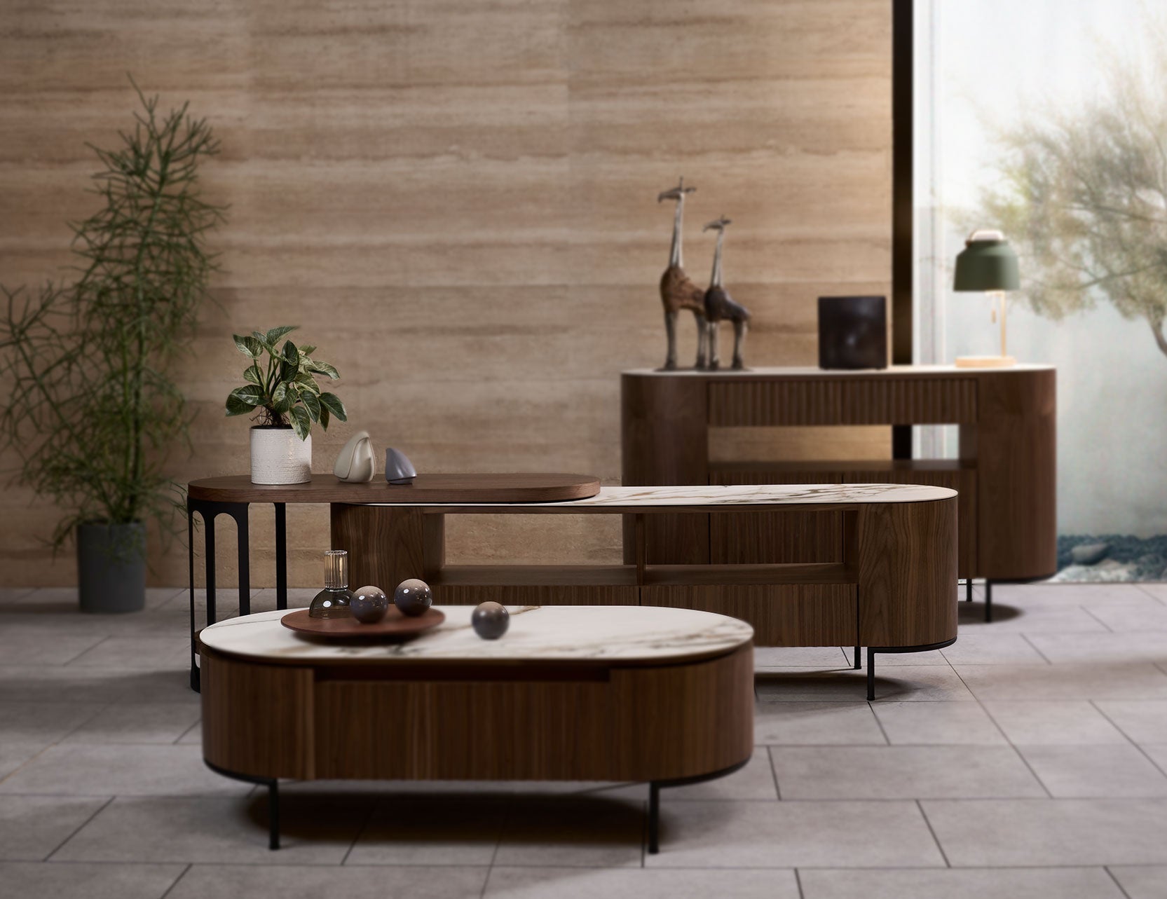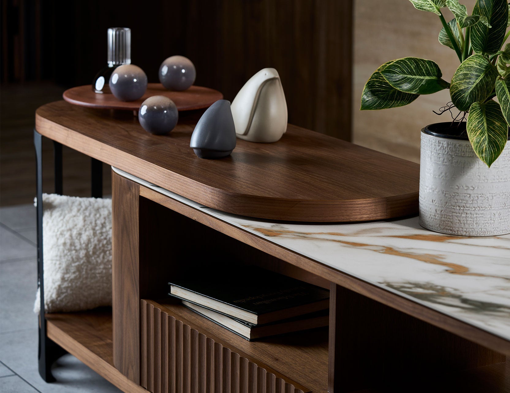 Console TV extensible avec plateau en pierre frittée FLUTO