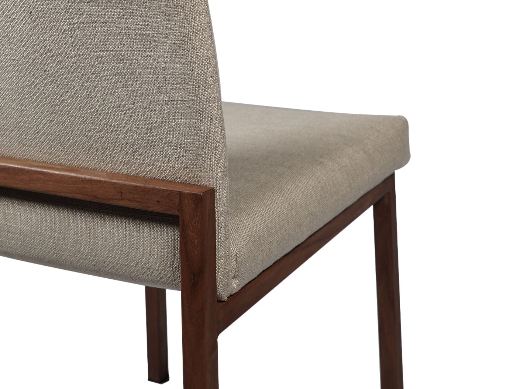 La chaise de salle à manger Flex est une pièce moderne et luxueuse aux tons naturels. Sa structure métallique unique est plaquée de noyer américain, alliant la beauté du bois à la robustesse du métal. Cette chaise allie l'élégance de la vie urbaine à l'essence des tons chauds de la nature, un atout précieux pour tout espace repas. À associer idéalement avec la table à manger Bolda avec plateau en quartz.