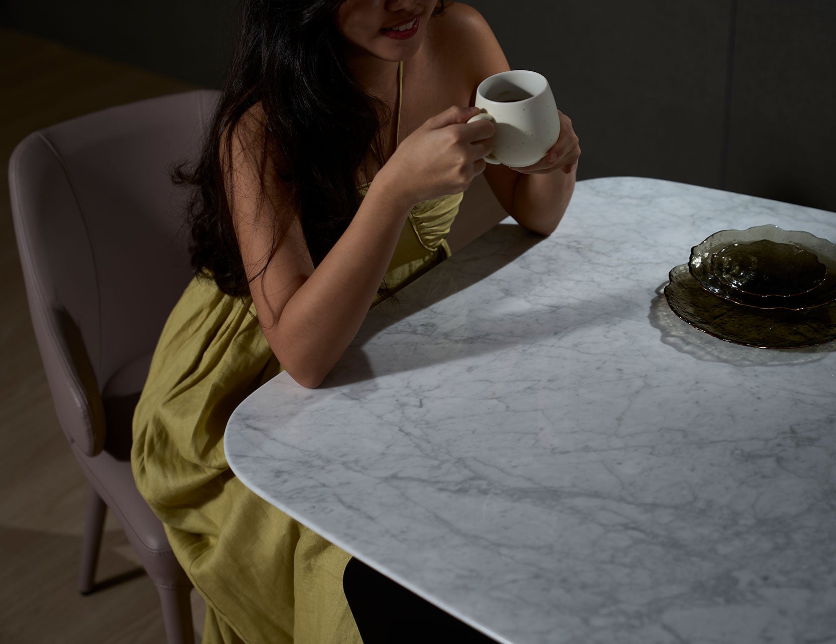 Table à manger FOLD en quartz avec accents de marbre