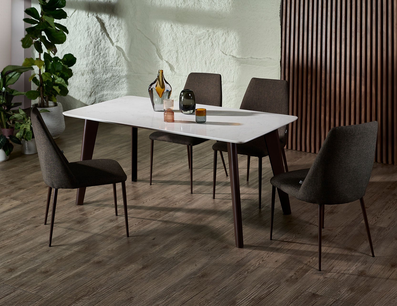 Table à manger KAY en quartz avec accents de marbre