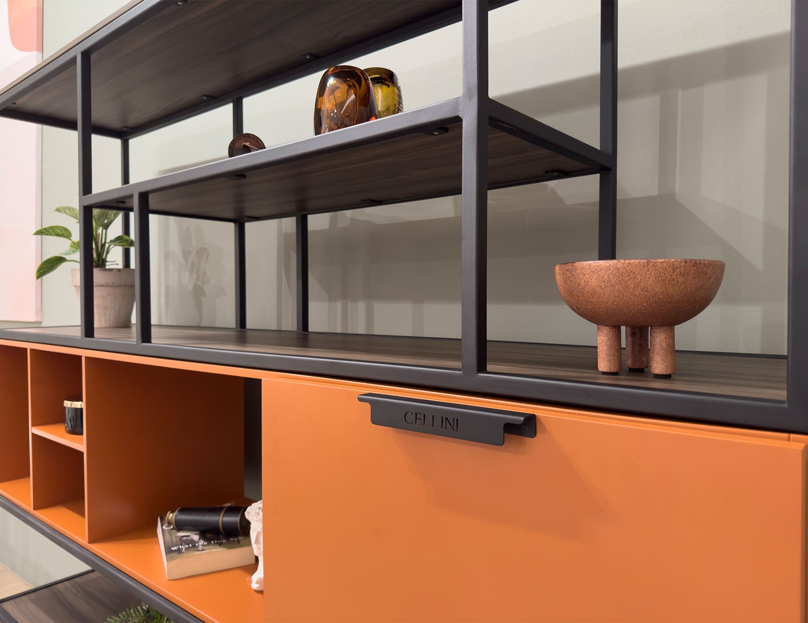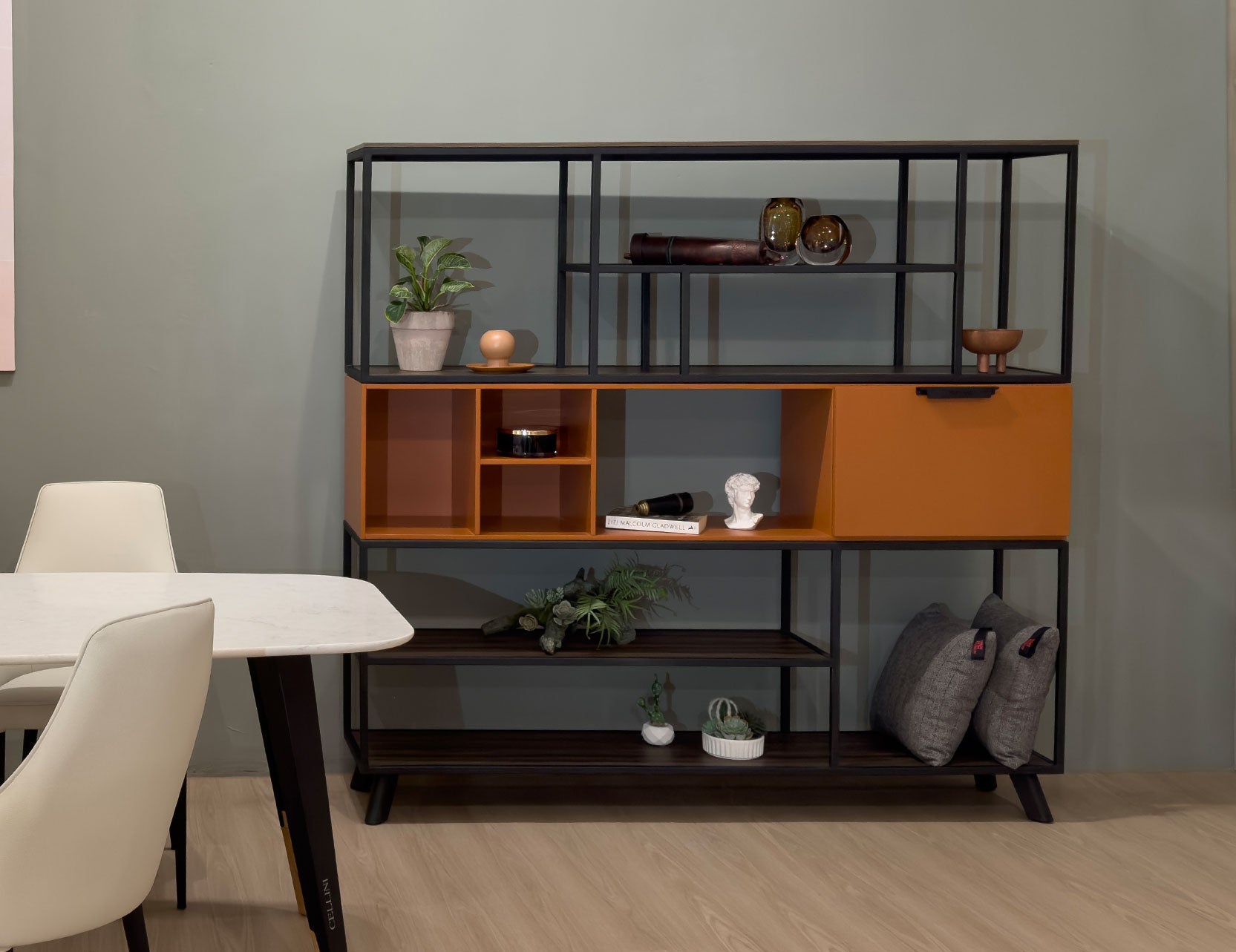 Découvrez la vitrine NERO 56, une pièce qui allie avec aisance design moderne et une touche de dynamisme. Fabriquée en MFM Frapp Walnut et présentant un contraste saisissant entre les panneaux MDF couleur brique et un élégant cadre en acier noir, cette vitrine apporte une touche graphique et audacieuse à tout espace.