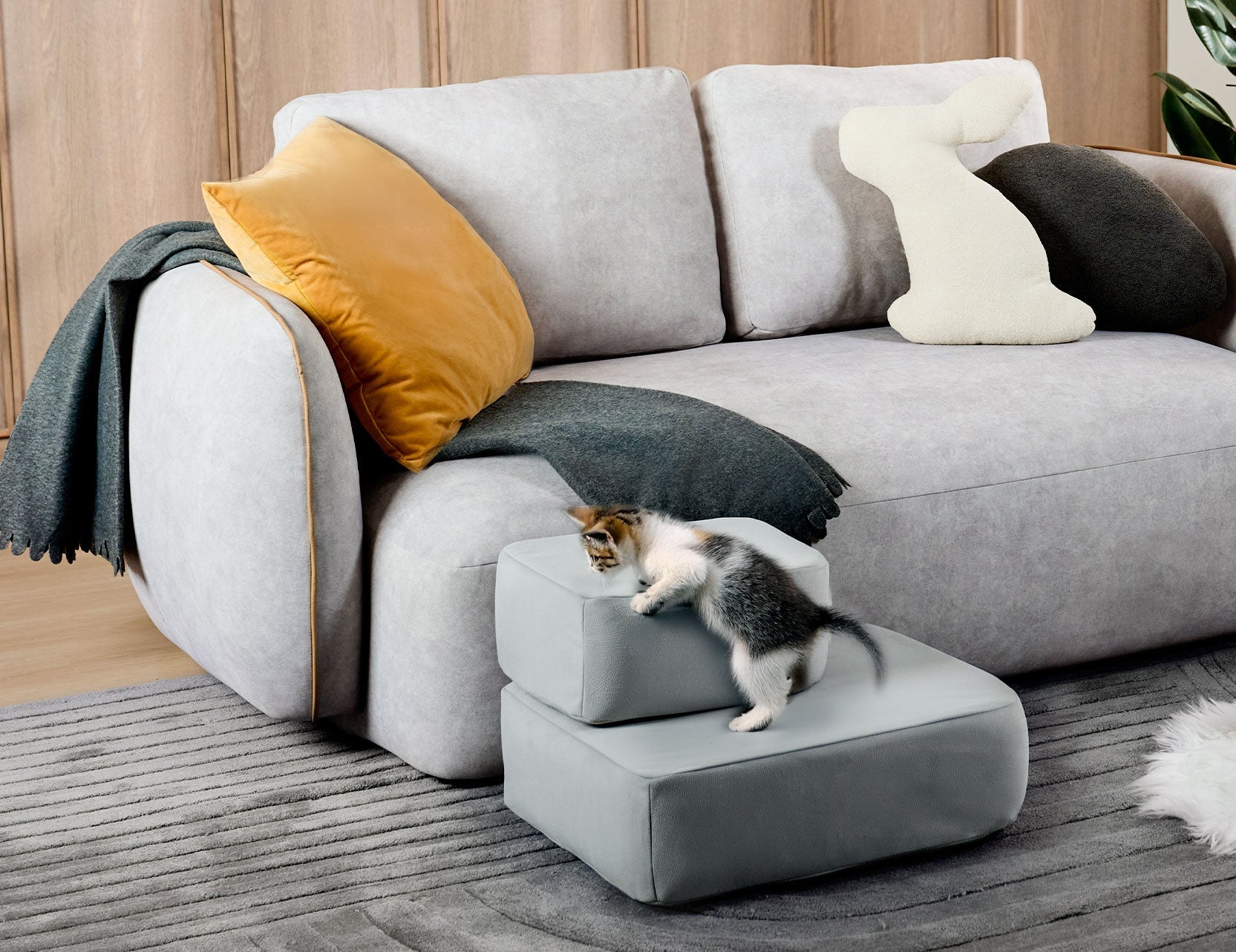 Parfaits pour les canapés bas comme hauts, les marches Pet Steps sont stables et offrent un bon maintien, permettant à votre animal de monter et descendre en toute confiance. De plus, leur nettoyage est un jeu d'enfant : la housse en tissu est amovible et lavable, évitant ainsi les traces de pattes sales ou les poils d'animaux.