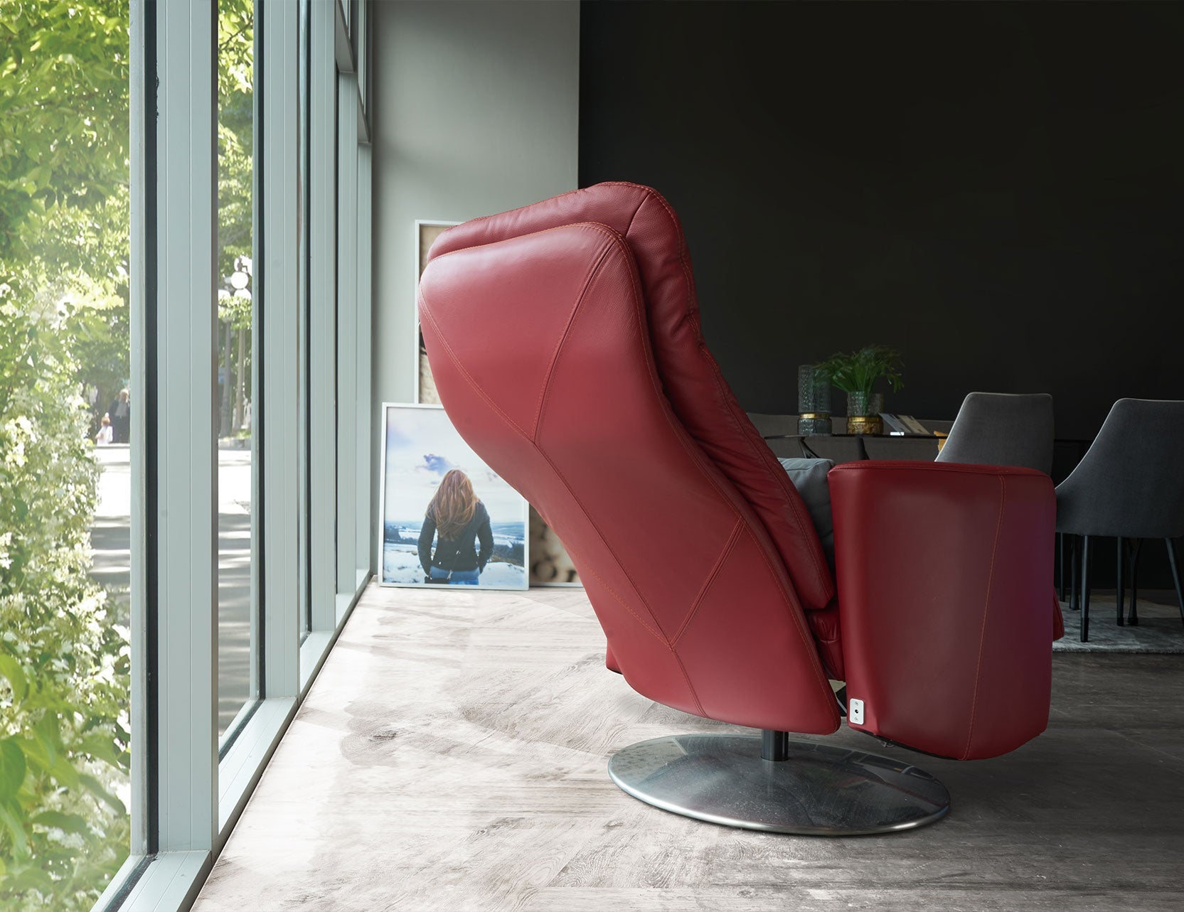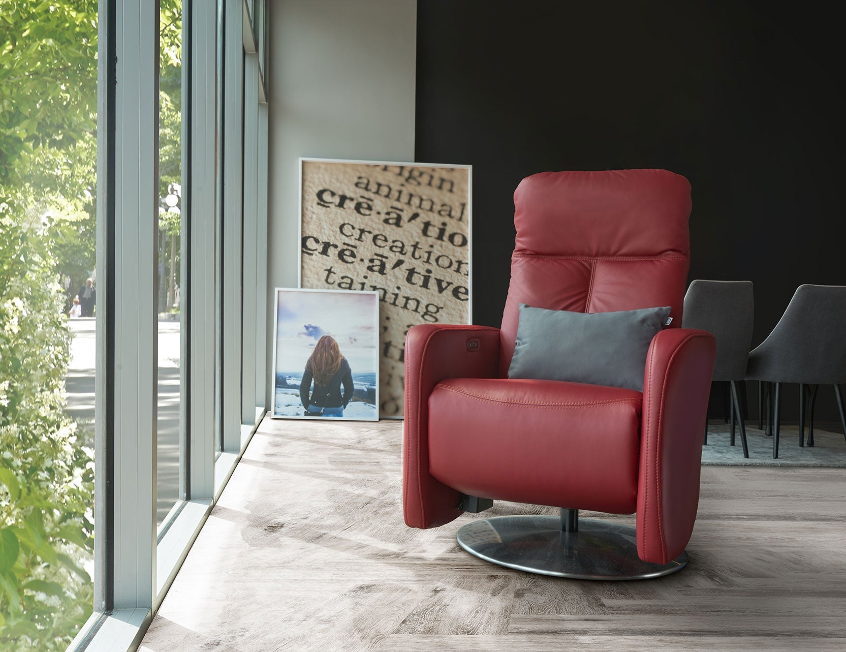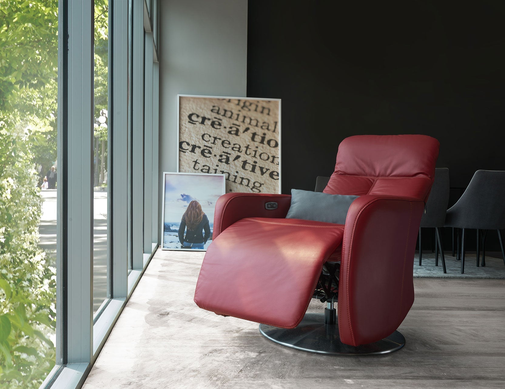 Découvrez le fauteuil inclinable motorisé SEVA : un fauteuil élégant et moderne, conçu pour un confort absolu. Avec sa forme élancée et son revêtement tout cuir lisse, il s'intègre parfaitement aux intérieurs de moyenne et grande taille.